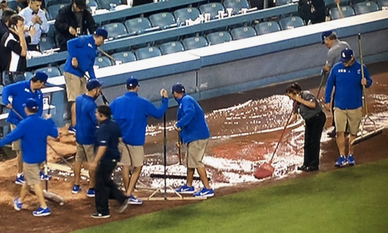 Well, that was an eventful night at Dodger Stadium last night! Matt Kemp‘s lead-off homer in the bottom of the 4th turned out to be the final real highlight of the spring. The Dodgers take the spring finale and the Freeway Series by a final score of 4-3 in 5 innings thanks to a plumbing problem that flooded stadium offices and left a pool of waste water flooding foul territory on the third base side of the ballpark.
